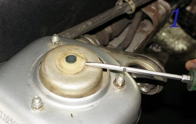 Снимите защитный колпак верхнего крепления стойки амортизатора