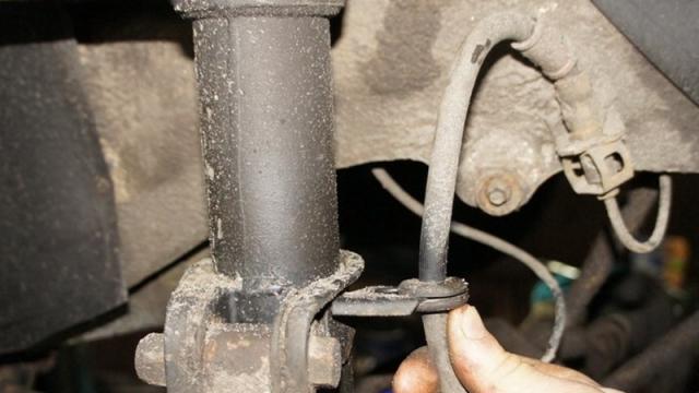 Снимаем шаровый шарнир - Отведите тормозной шланг от кронштейна, чтобы не повредить его.