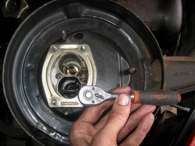 Теперь берем ключ на 13, очень удобно пользоваться трещоточным ключом, и откручиваем 4 гайки крепления карбюратора ВАЗ 2107 к корпусу впускного коллектора.