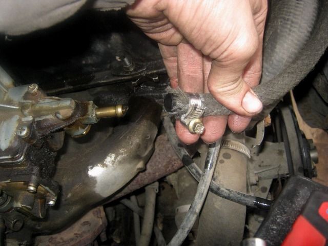 Теперь берем крестовую отвертку и ею откручиваем болтики хомутов, которыми зажаты топливные шланги.