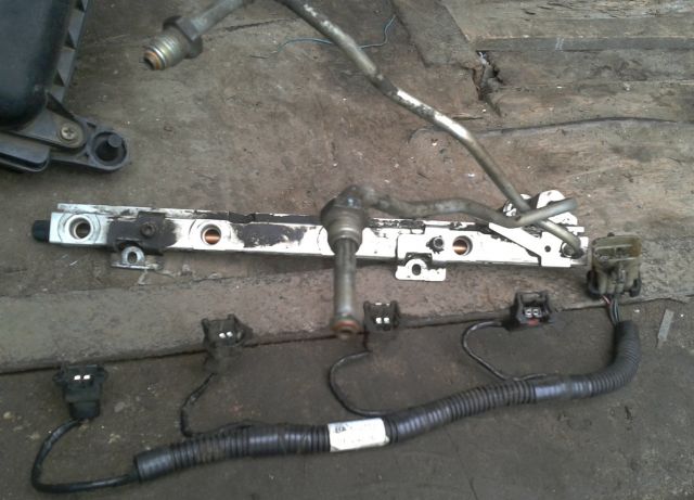 Легким покачиванием рампы вынимаем все четыре форсунки из посадочных мест и извлекаем рампу в направлении левого борта автомобиля.